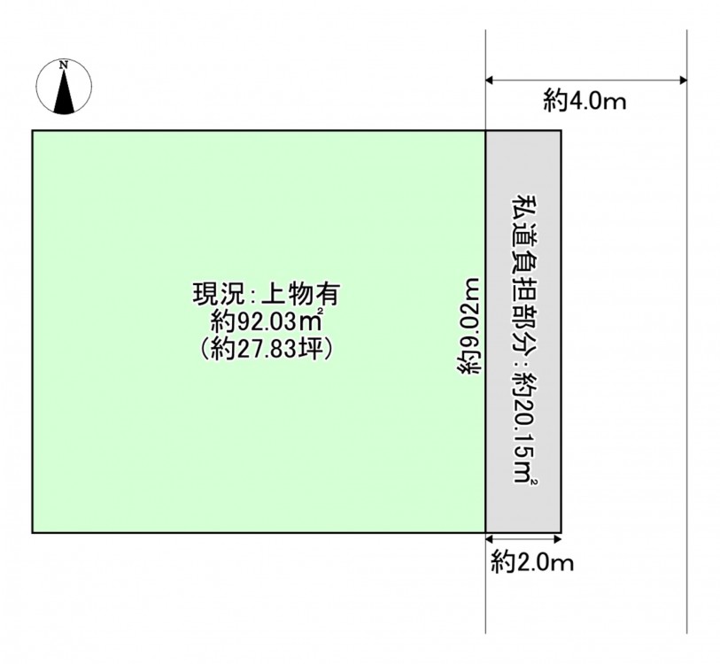 - 私道4m 間口約9m